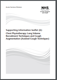 This leaflet explains some of the Lung Volume Recruitment Techniques and Assisted Cough Techniques that your physiotherapist has taught you.